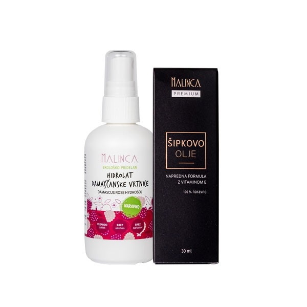 Šipkovo olje v kombinaciji s hidrolatom damaščanske vrtnice, ki obraz prijetno navlaži, ostaja v moji večerni rutini nege obraza.