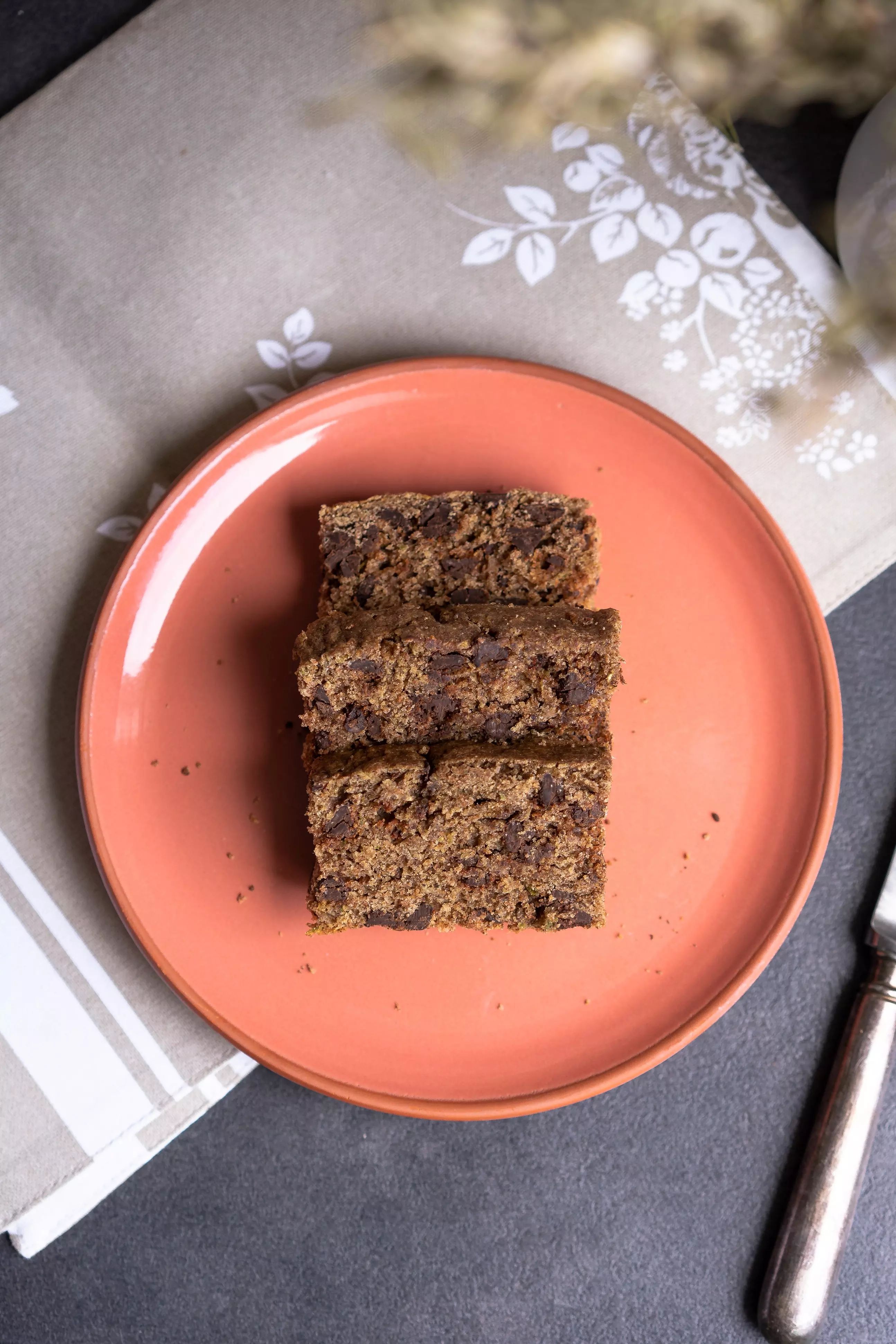 OPIS POSTOPKA: Bučko naribaj v posodo in posoli, da spusti vodo. Pečico segrej na 160°C in pekač v velikosti 20 x 10 cm obloži s peki papirjem. V posodo z bučko dodaj jajca, javorjev sirup, kokosovo olje (naj ni vroče) in vaniljev ekstrakt, dobro premešaj. V drugi posodi zmešaj pirino moko, sodo bikarbono, cimet, muškatni orešček in nato dodaj k bučki. Dodaj še čokoladne koščke in vse skupaj premešaj, da se vse sestavine dobro povežejo. Maso vlij v pekač in peci 50-60 minut oz. dokler zobotrebec vstavljen v sredino pečene mase ne pride ven čist brez mokre mase. Poskusi kolač tudi namazan z mandljevim maslom.