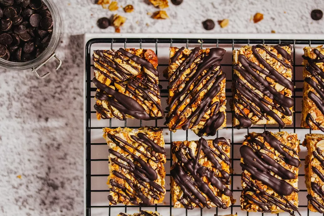 Granola kocke s temno čokolado