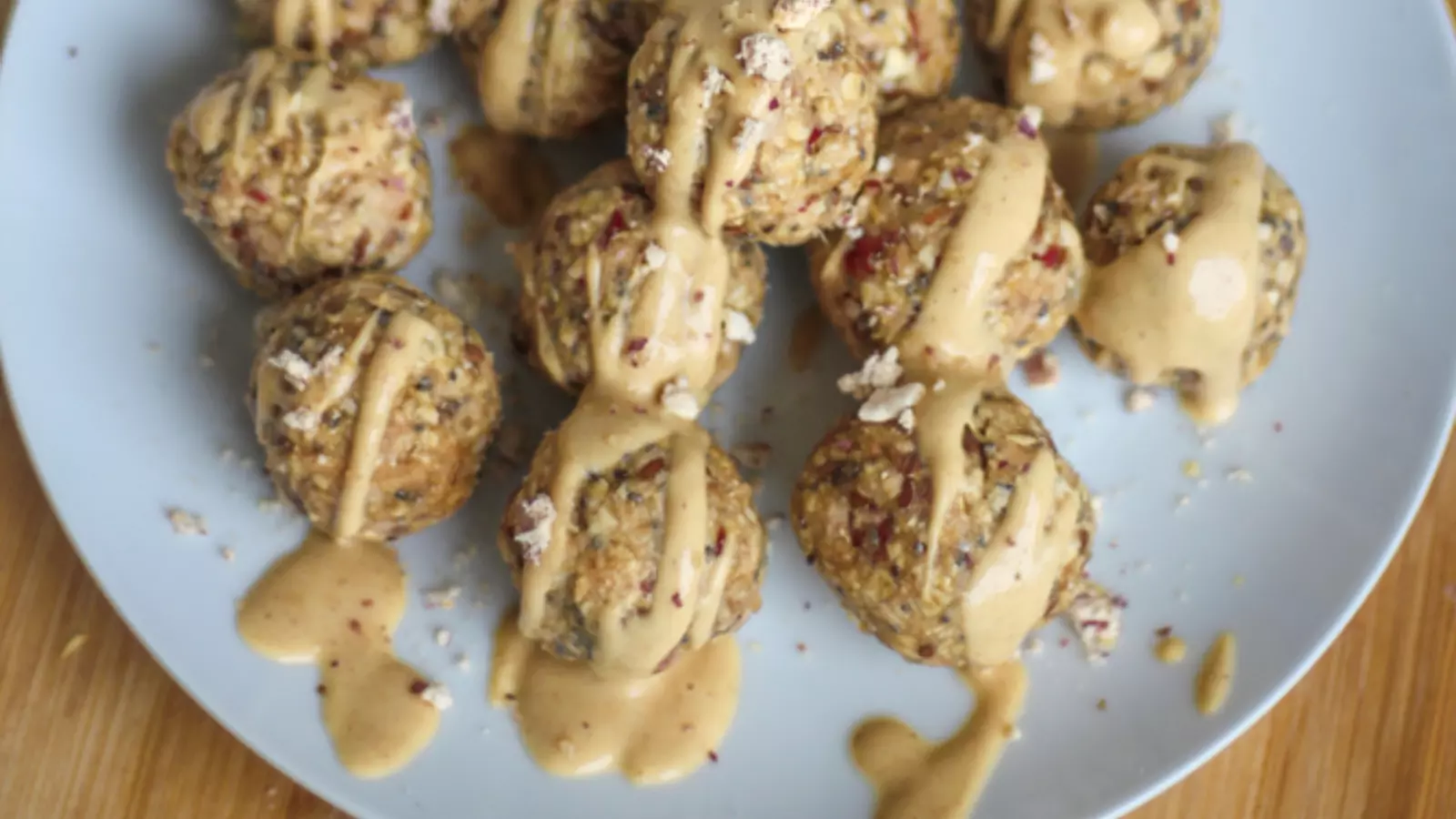 Najprej naribamo jabolko in jo ožamemo, da spusti odvečno tekočino. V večji skledi zmešamo ovsene kosmiče, naribano jabolko, arašidovo maslo, med, lanena in chia semena, mleko ter cimet. Iz mase oblikujemo kroglice, ter jih na koncu okrasimo z arašidovim maslom in sušenimi jabolki. Okusen in zdrav snack je pripravljen!
