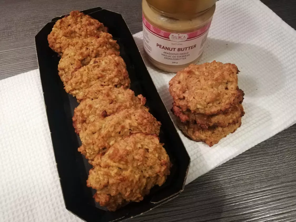 OPIS POSTOPKA: V posodi kremasto zmešamo jajca, kokosovo olje, kokosov sladkor in vaniljo. V drugi posodi zmešamo suhe sestavine: moko, ovsene kosmiče, cimet, pecilni prašek in muškatni orešček. Jabolki olupimo in naribamo. V posodo z mokrimi sestavinami nežno umešamo naribani jabolki, dodamo suhe sestavine in vse premešamo. Pekač obložimo s papirjem za peko. Piškotno maso zajamemo z žličko in jo položimo na pekač. Piškote pečemo 15 - 20 minut na 175 stopinj. Pustimo, da se ohladijo.