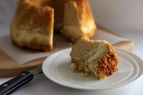 1) V posodi zmešamo vse suhe sestavine, ki jim nato dodamo mokre ter ponovno premešamo. 2) Manjši pekač za marmorni kolač namastimo, nato vanj vlijemo polovico mešanice. 3) Prekrijemo s skutno mešanico in dodamo še preostanek testa. 4) Pečemo 40-50 minut na 180 stopinj oz. do zlato-rjave barve. 5) Pustimo, da se kolač popolnoma ohladi nato ga šele vzamemo iz pekača. 6) Postrežemo hladnega.