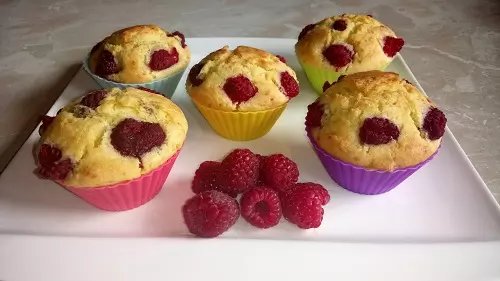 OPIS POSTOPKA: V eni posodi zmešamo jajce, eritritol in stopljeno maslo ter na koncu dodamo kislo smetano. V drugi posodi zmešamo moko, pecilni prašek, sodo in sol. Suhe sestavine dodamo k mokrim in mešamo toliko časa, da se vse sestavine povežejo. Z maso napolnimo modelčke za mafine in po vrhu razporedimo maline, ki jih narahlo potlačimo v testo. Pečemo pri 180 stopinjah, 20-25 minut oz. ko so zlato rjave barve.
