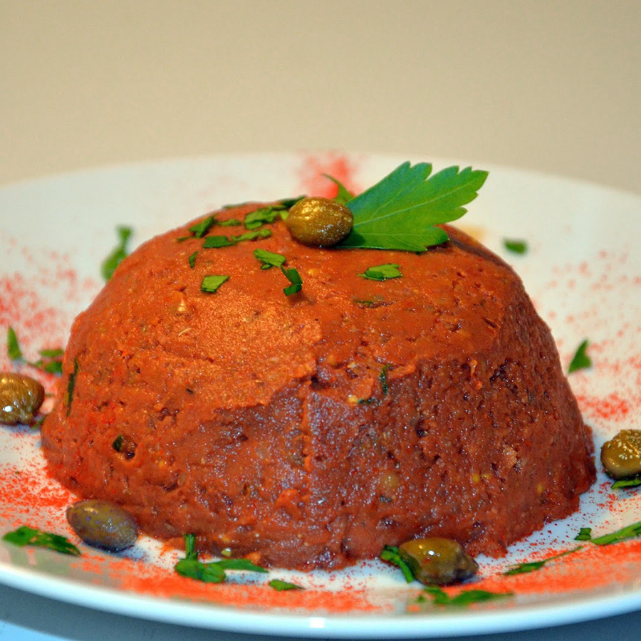 Kot predjed lahko s popečenimi kruhki postrežemo praznično klasiko – tatarski biftek. Da ga bodo lahko jedli res vsi, tudi vegani, nosečke in tisti, ki jim ne diši surovo meso, lahko pripravimo vegansko različico, ki po okusu prav nič ne zaostaja za mesno varianto.