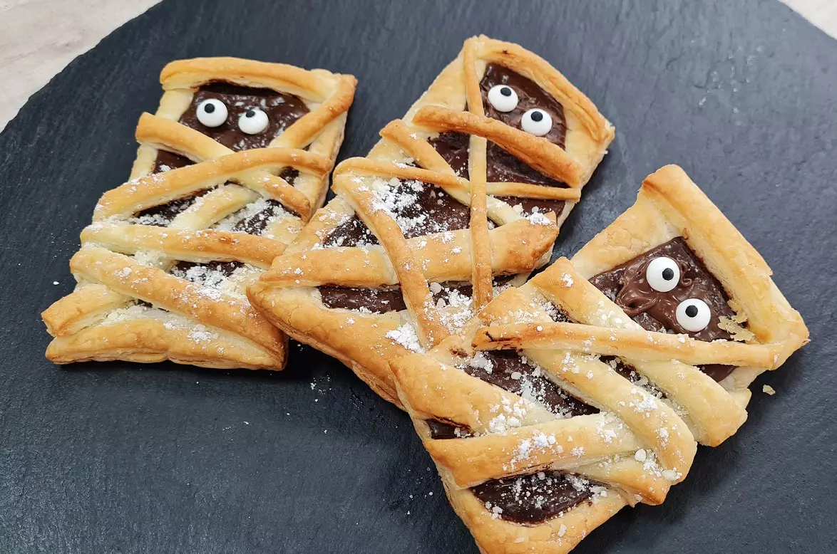 Ko so mumije pečene jih posujemo z eritritolom (ali sladkorjem) v prahu, dodamo oči in se pripravimo na sladko in najbolj strašno noč v letu.