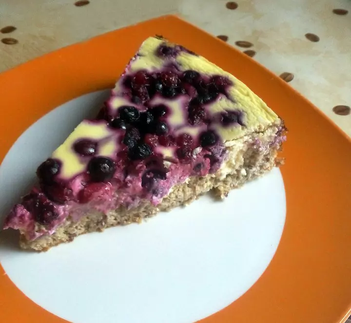 OPIS POSTOPKA: Za testo najprej ločimo mokre in suhe sestavine ter jih nato zmešamo skupaj. Testa ne pečemo, damo v pekač premera 25cm, nato pa zmešamo še sestavine za nadev in jih prelijemo preko testa. Šele nato pečemo- v pečici na 180 stopinjah, 20-25 minut.